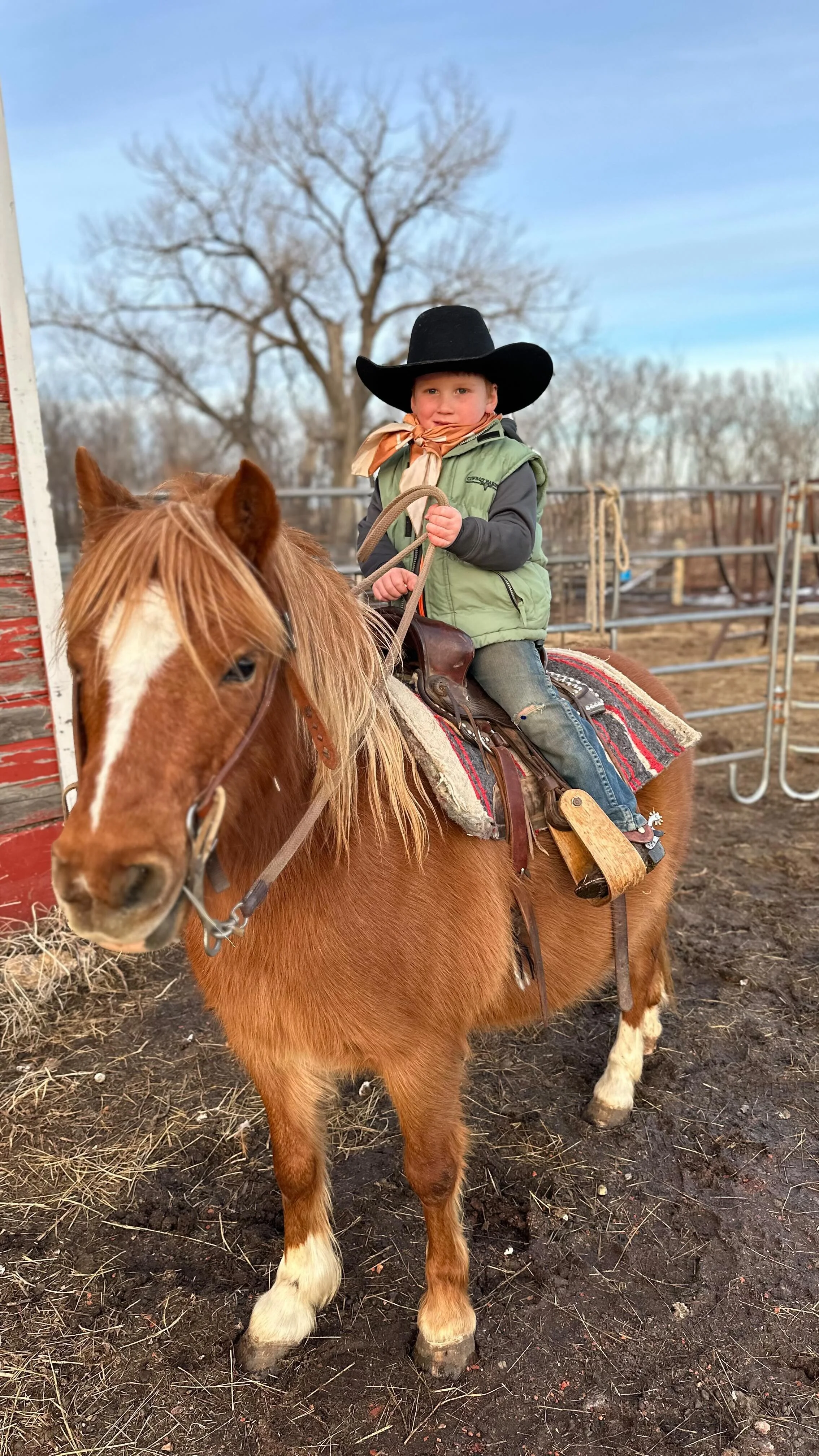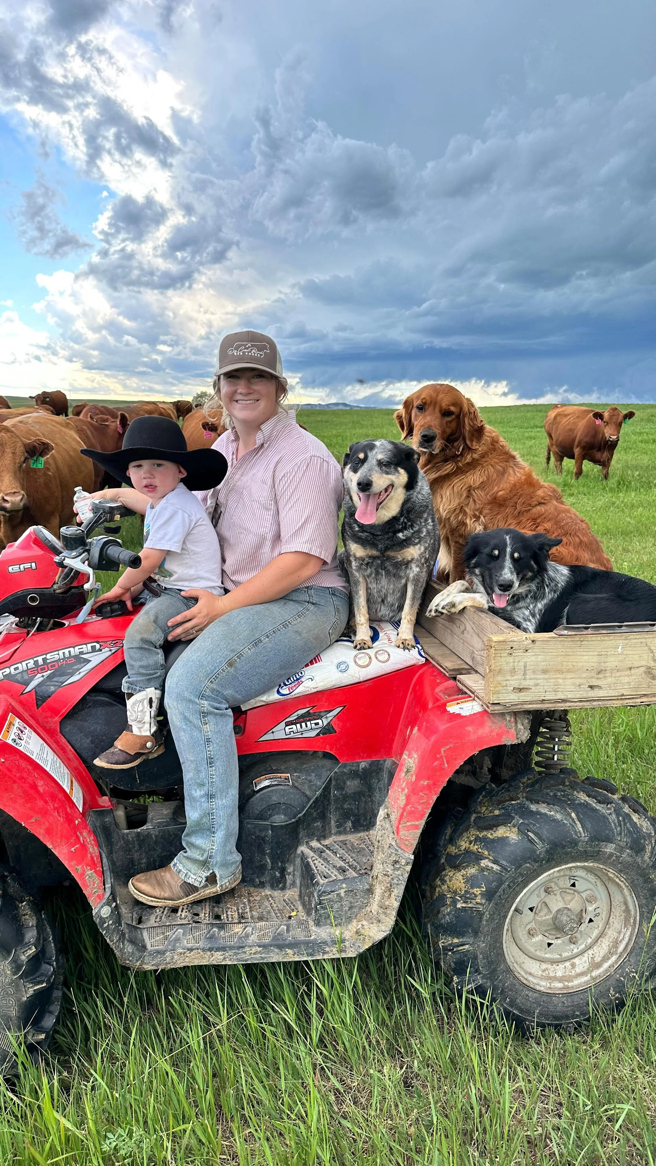 Dry Creek Ranch was established in 1907 by John and Inger Sabe. As the ranch was passed down through the generations, Haley knew her dream was to take over the family ranch. She met Max in 2014 who had the same passion for ranching and the rest is history! They got married in 2017 and had their first son, Max Odell, in 2019 and welcomed their second son, Hayes Oscar, in 2021. Haley and Max now run registered and commercial Red Angus cattle. They also provide ranch raised beef that can be shipped directly to your doorstep! Along with the cattle operation, Max owns Robison Custom Leather for all your leather needs!
